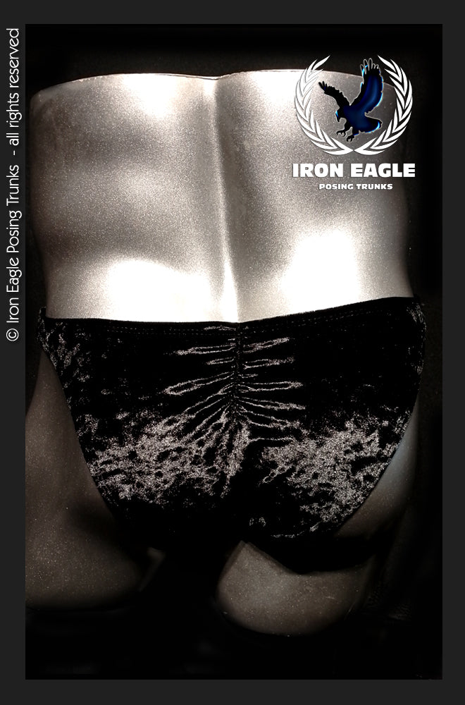 Iron Eagle Posing Trunks are fully lined on the front with our super soft Comfort+ lining and produced using the highest grade, 4 way stretch rich velvet fabrics for ultimate fit, comfort and durability. Please bear in mind the elasticity of velvet is slightly less than Mystique or Lycra fabrics.