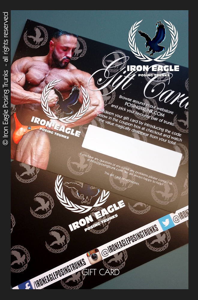 The perfect present for friends and family, our gift cards don't ever expire. The balance can only be redeemed for the purchase of posing trunks. They can be sent either to you or directly to the recipient if required, and can be used for full or part payment of any purchase on the website.